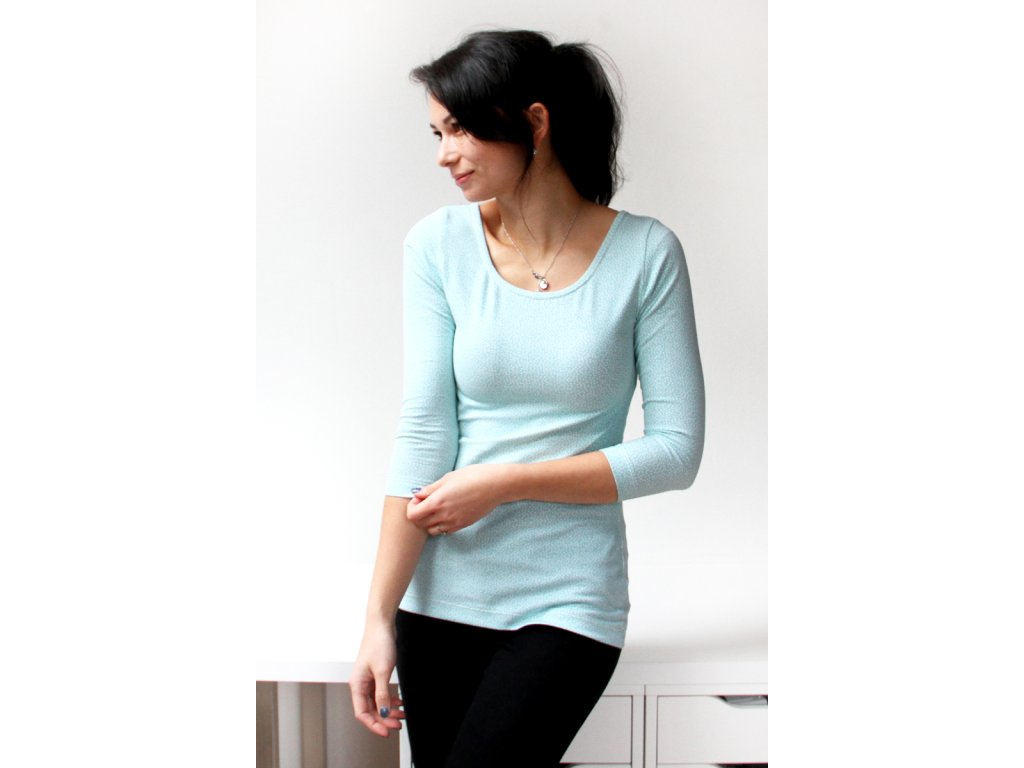 Střih na tričko BALLERINA je vhodný pro slabé velmi pružné pleteniny. Ideální je např. bavlněný úplet s vysokým podílem elastanu, viskózový úplet apod.