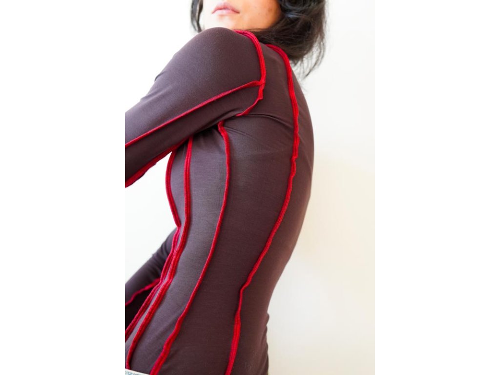 Střih na dámské tričko INSIDE OUT s přizanými švy, projmutou siluetou a prsními i pasovými záševky přenesenými do princesových švů. Díky švům je tričko perfektně tvarované a budí neformálně korzetový dojem. Rukávy jsou také členěny do několika částí.