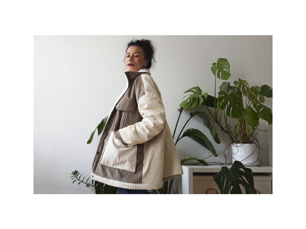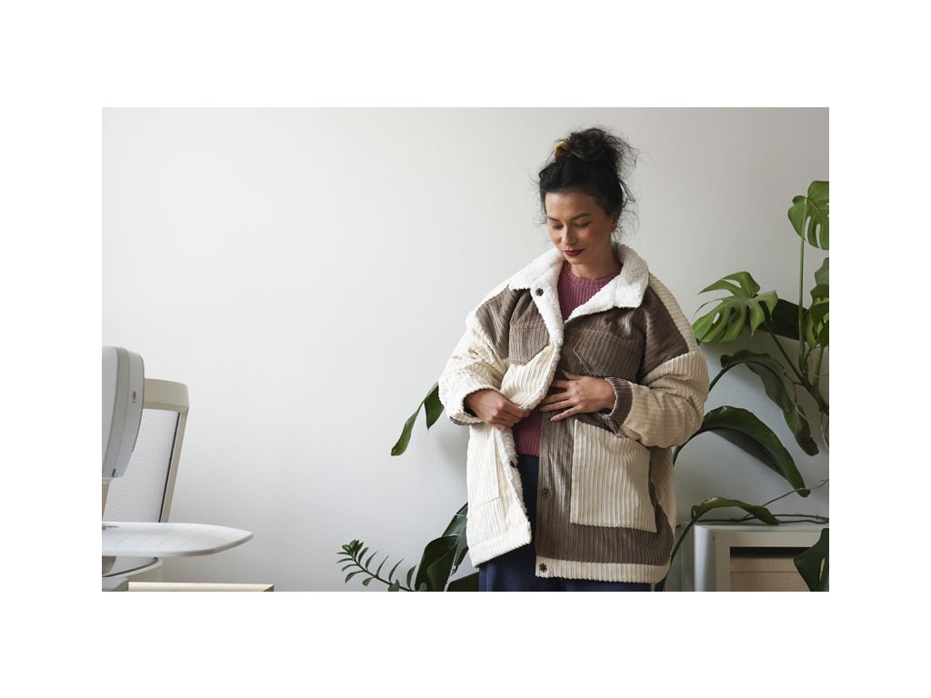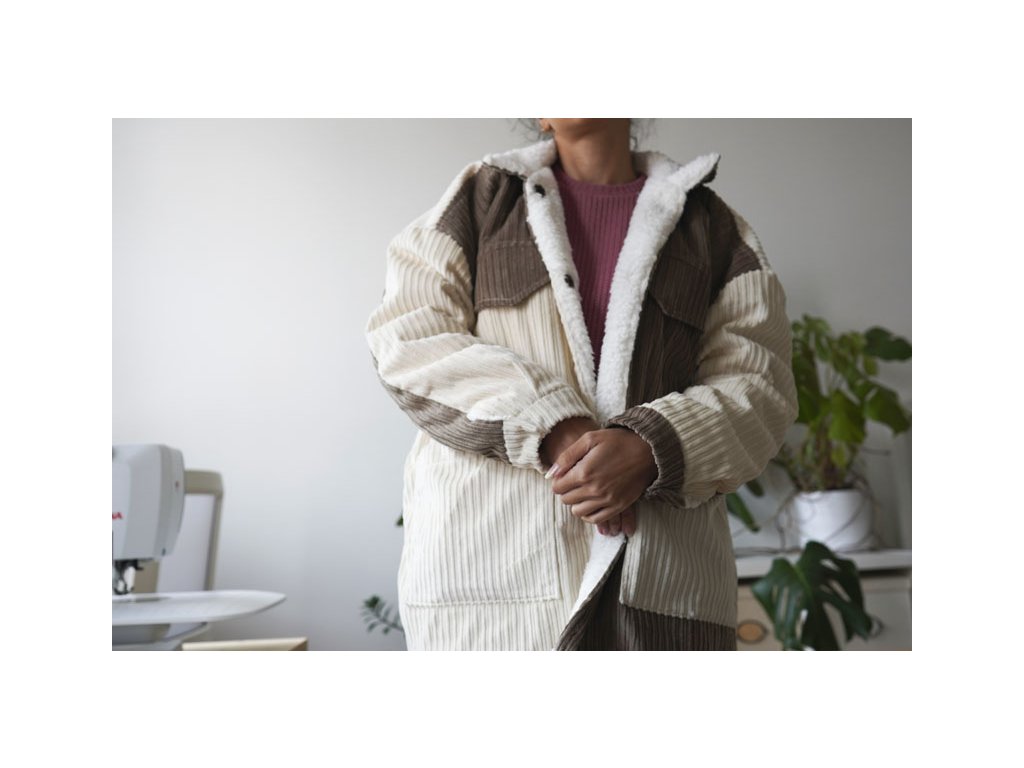 Střih na dámskou bundu je vhodný pro středně silné až silné tkaniny, jako je například manšestr, flauš, kabátové materiály apod. Jako podšívku jsem použila wellsoft (druh fleecu).