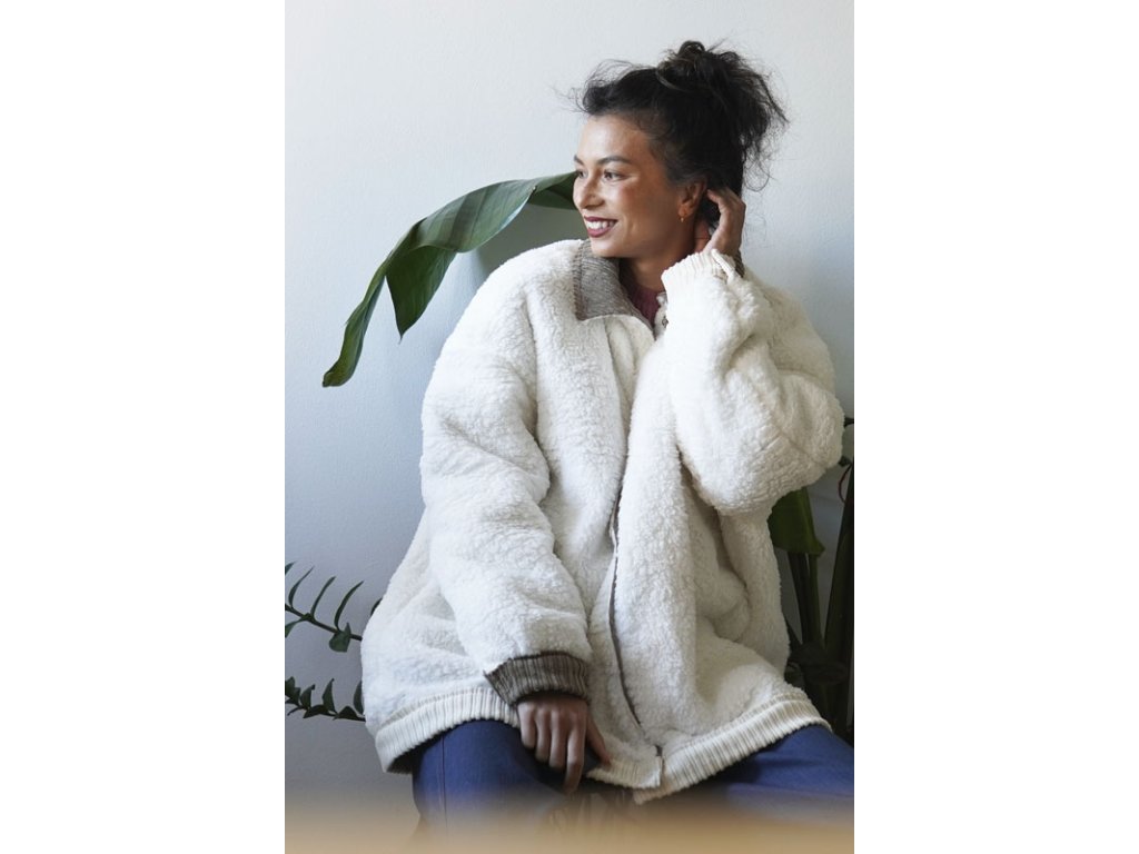 Dámská pohodlná oversized bunda s kompletní podšívkou má rukávy do manžet, límec, velké nakládané kapsy a kapsové patky. Bundu lze nosit jako oboustrannou.