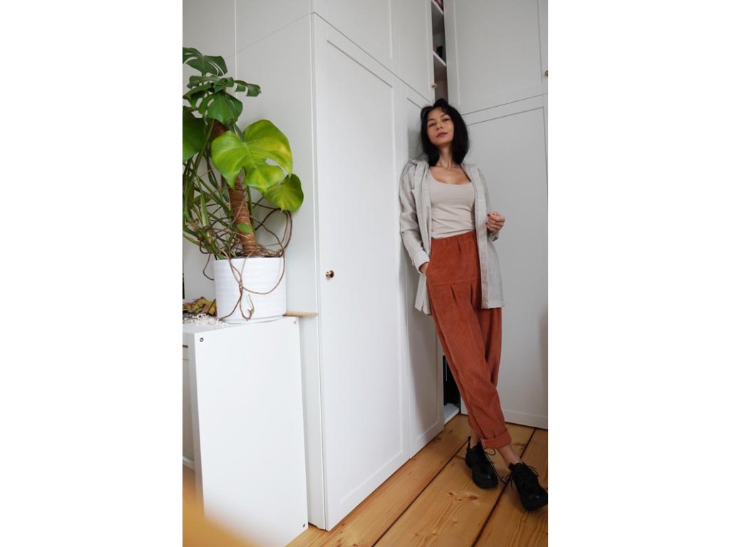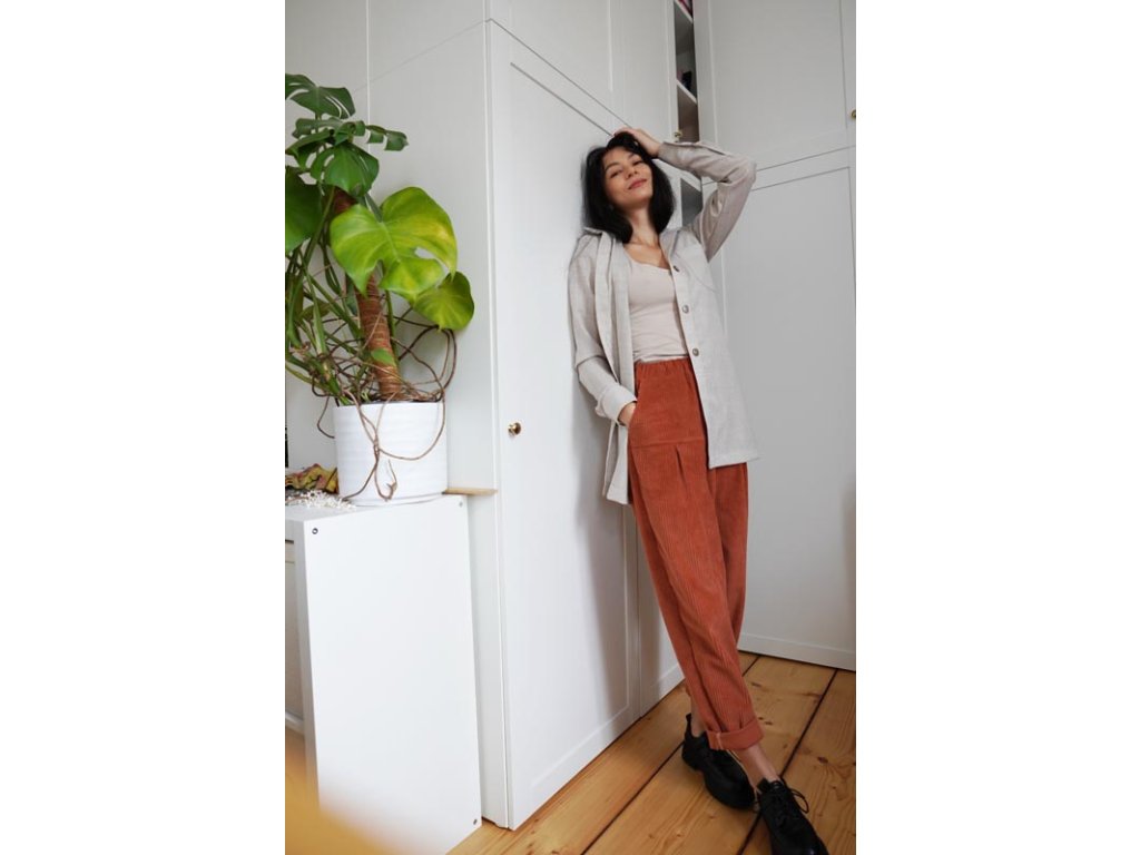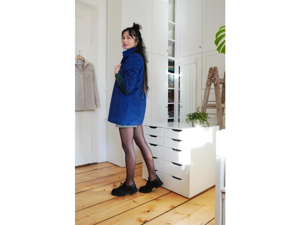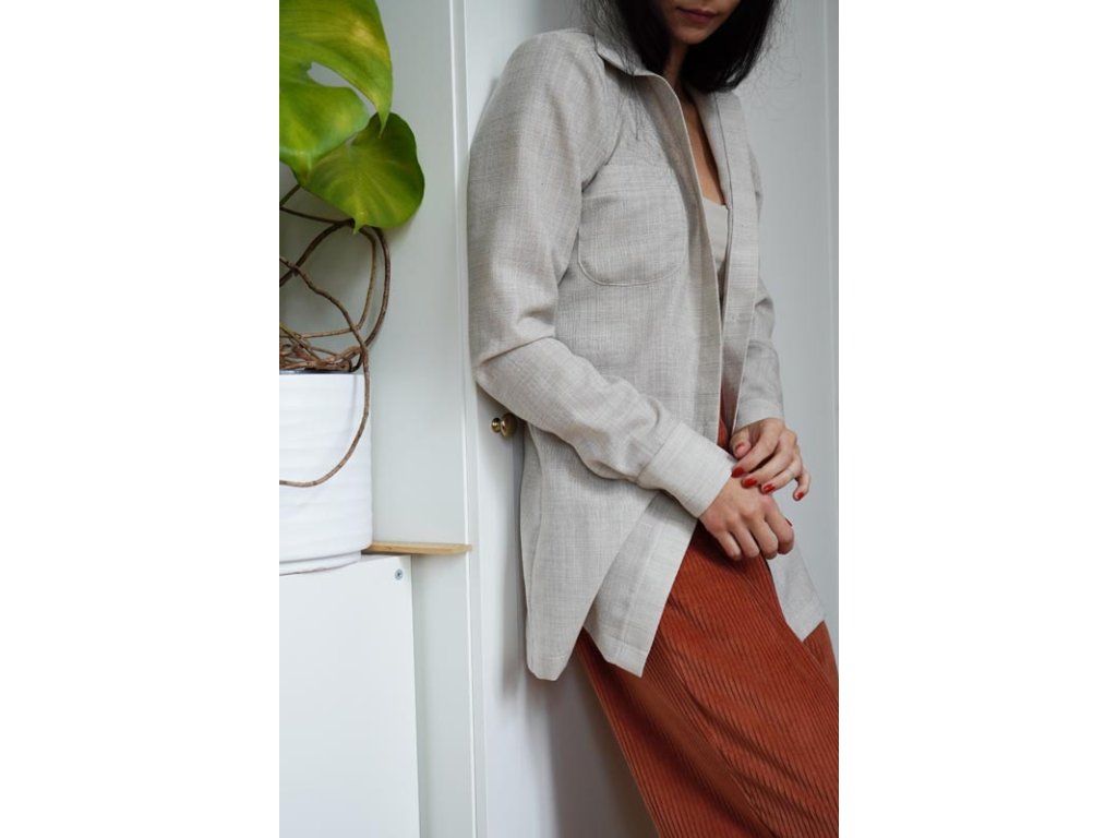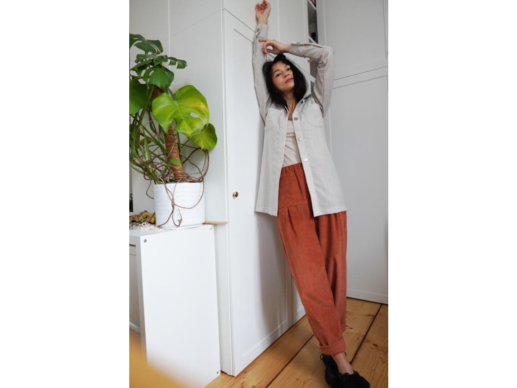 Košile je rovné, jen mírně projmuté siluety, zadní díl je členěný do tří spodních částí a dvojitého sedla. Rukávy jsou spíše užší a zakončené manžetou. Přední díly jsou doplněny kulatými nakládanými kapsami. Košile je delší, díky tomu a také díky velmi univerzálnímu střihu se hodí k ušití z mnoha materiálů. Pokaždé vám vznikne trochu jiný a neotřelý avšak nadčasový model. Ostatně, podívejte se na následující fotky sami...