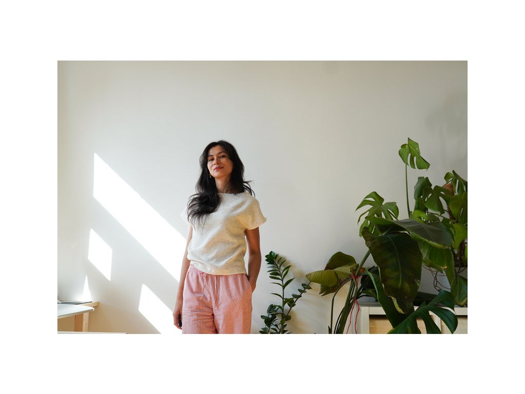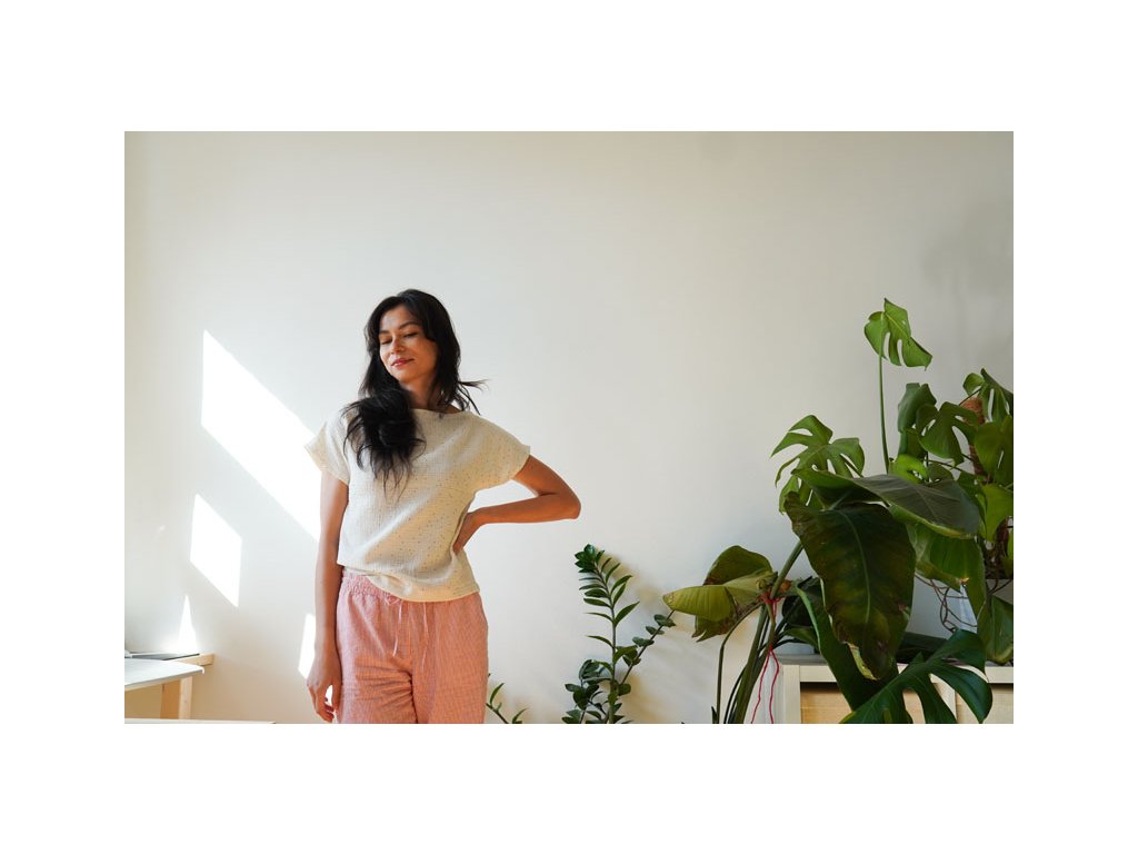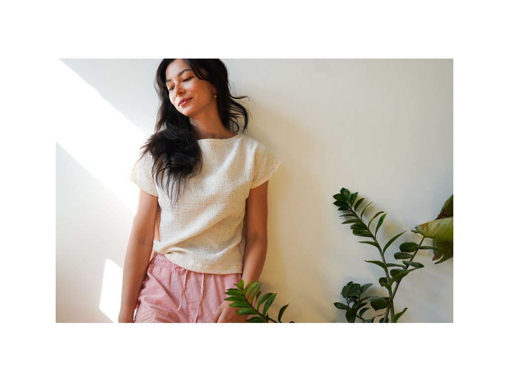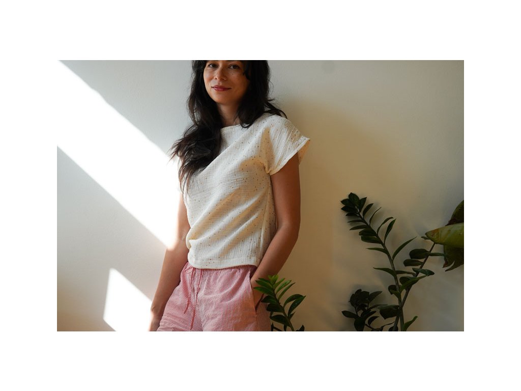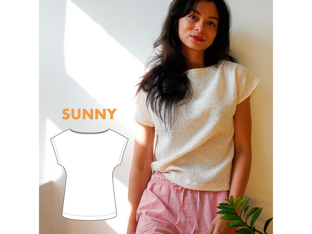 Dámské tričko SUNNY je opravdu velmi jednoduché na ušití a proto je vhodné i pro úplné začátečníky. Tričko má lodičkový výstřih a přinechané rukávy. Silueta je volná, mírně rozšířená.