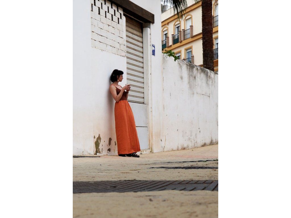 Střih je vypracovaný pro kombinované materiály - slabé a splývavé pleteniny a tkaniny. Slabší pleteninu, jako je např. tenký bavlněný úplet s elastanem, viskózový úplet nebo bambusový úplet využijete na živůtek a pas. Slabou splývavou tkaninu, jako je např. halenkovina či viskóza bude potřeba na sukni.