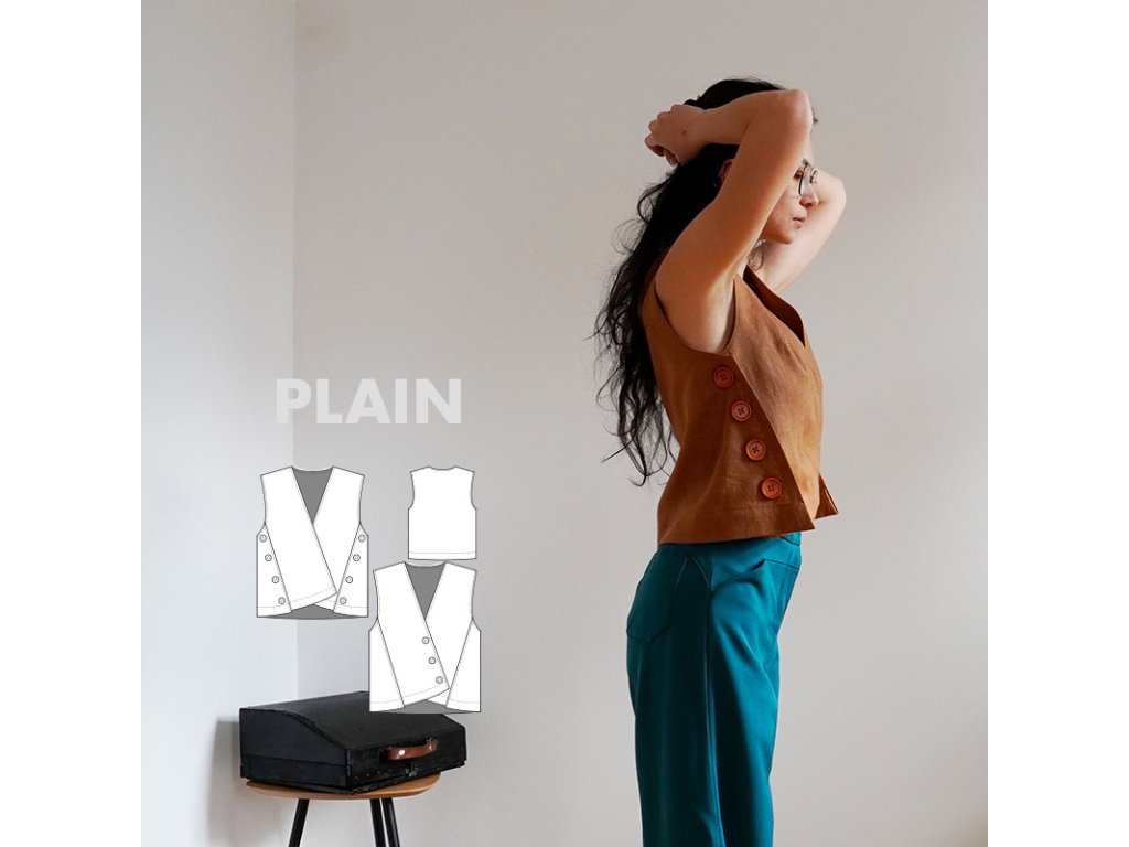 Střih na dámskou variabilní vestičku PLAIN je zpracovaný v profesionálním programu pro konstrukci střihů a je vyvedený ve velikostech 32–60.
